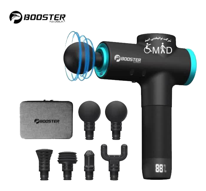 تفنگ ماساژ بوستر M2 برای چه مواردی استفاده می شود؟شل کردن عضلات سفت، گره، گرفتگی و اسپاسمشکستن بافت اسکارکاهش درد، درد و تنش عضلانیبهبود دامنه حرکتیتحریک بافت عمیقبهبود گردش خونریکاوری سریع عضلاتتسکین استرس و اضطراباین ماساژور از یک مسواک برقی کم صداتر است و در هنگام استفاده تنها 55 دسی بل صدا دارد.با موتور 125 وات، یک تفنگ ماساژ خیلی قوی در نظر گرفته می شود.20٪ عمیق تر از ماساژورهای درجه مصرف کننده ماساژ می دهد. اکثر تفنگ های ماساژ فقط دامنه 10 میلی متری را ارائه می دهند که فقط ارتعاش درمانی را ارائه می دهد. با Booster M2، دامنه 12 میلی متری دارید که این یک تفنگ ماساژ ضربی است.دارای 8 سرعت اکثر اسلحه های ماساژ فقط 3-5 سرعت دارند. با Booster M2 شما 8 سرعت برای انتخاب دارید.Booster M2 دارای فناوری AI (هوش مصنوعی) اختصاصی است که سطح سرعت و تکنیک ارتعاش را متناسب با نحوه استفاده شما ارائه می دهد. به این فکر کنید مانند ماساژور خودتان که دقیقاً می داند دوست دارید چگونه ماساژ بگیرید!سبک بودنش تنها با وزن 1.1 کیلوگرم سبک و قابل حمل است تا بتوانید در حال حرکت ماساژ داشته باشید.